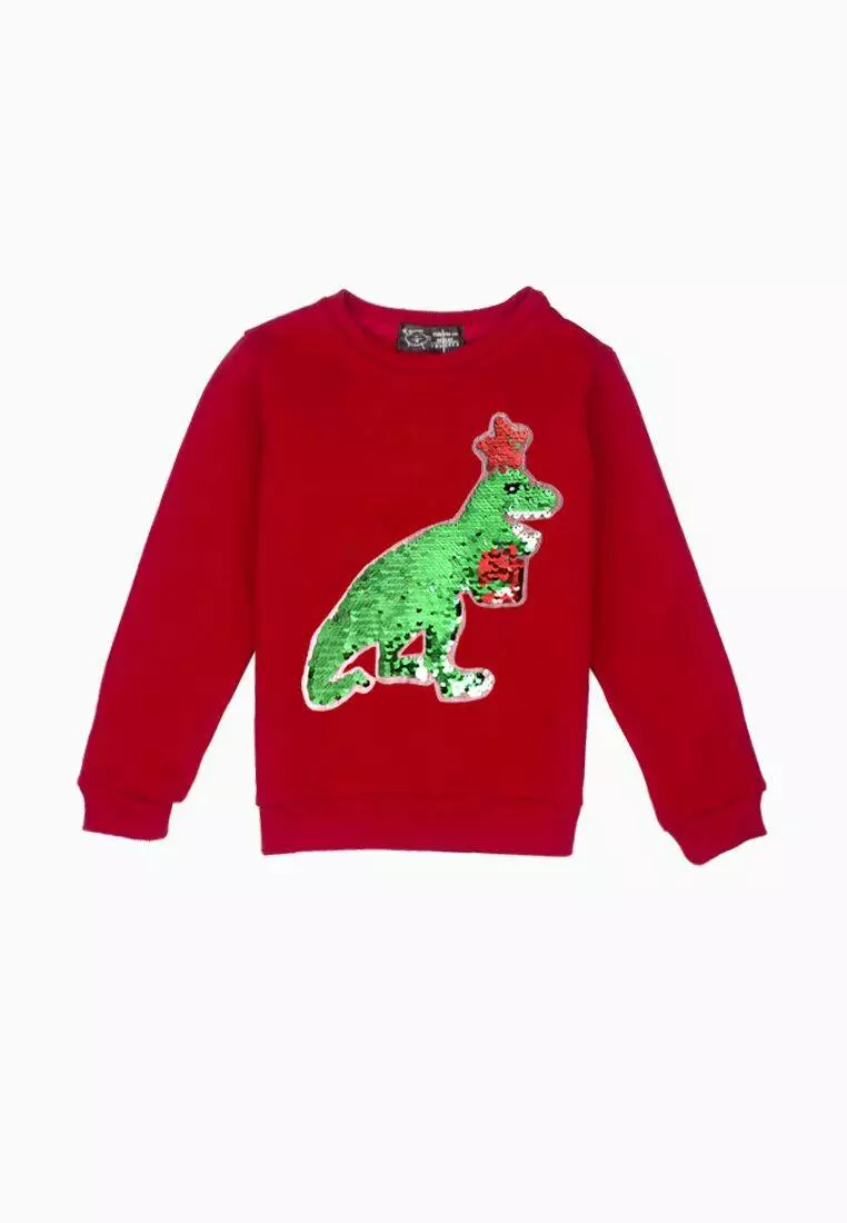 КАПСУЛА NEW YEAR Деталі моделі: світшот червоного кольору. Кругла горловина. Манжети на рукавах та по низу із якісної рибани. На грудях аплікація із паєток із зображенням Динозавтра. Без кишень. Тканина - тринитка на флісі.Склад: 90% бавовна, 10% еластанРозмірний ряд: на зріст від 92 см до 140 см.Рекомендації по догляду: машинне прання при температурі 30 градусів.