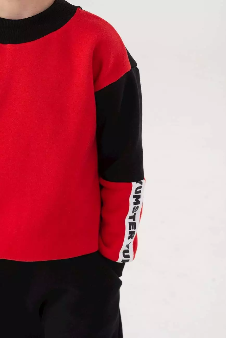 Світшот з брендованою тасьмою на рукаві червоний з чорним тринитка YC.02.09.023
