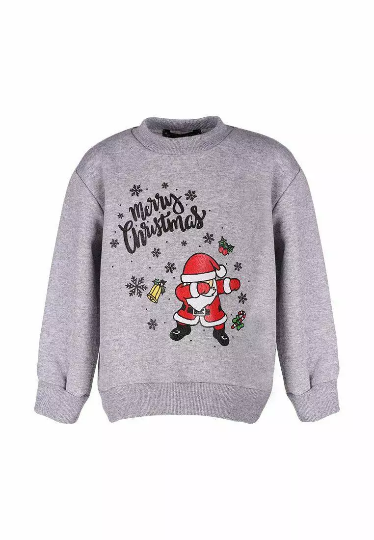 Прикольний сірий світшот з принтом "Дід Мороз".