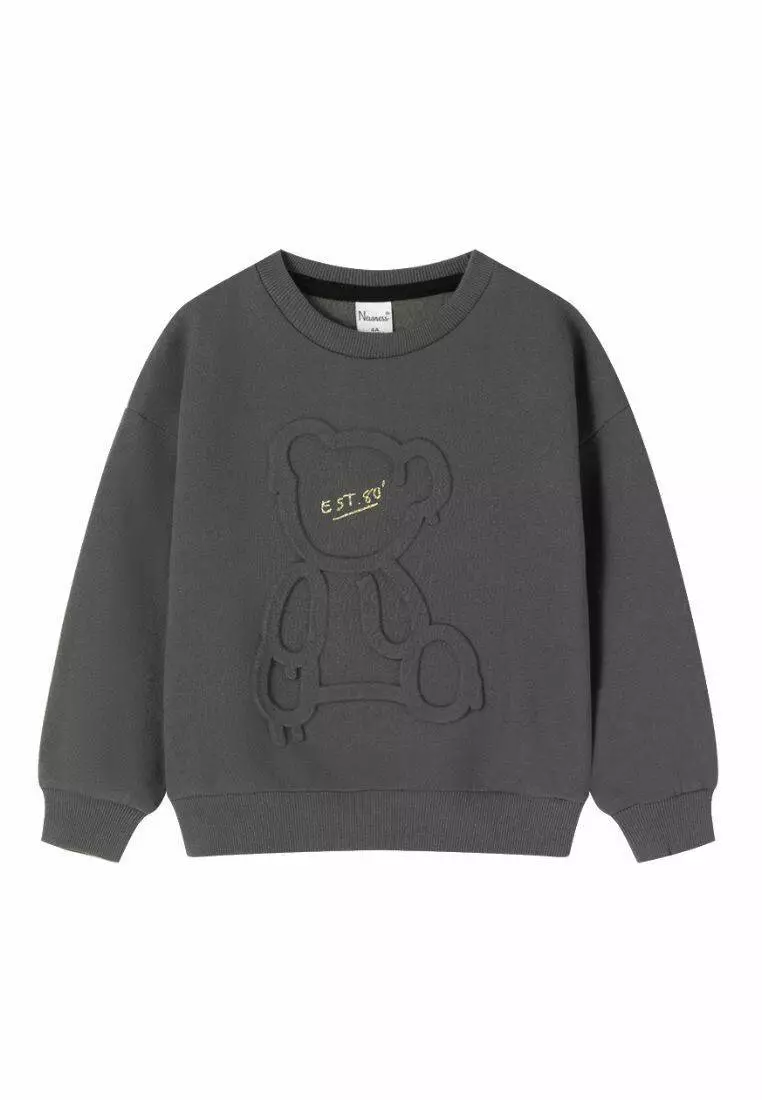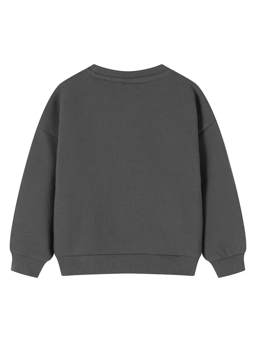 Деталі моделі: світшот темно-сірого кольору. Кругла горловина. Довгий рукав. На грудях об'ємний малюнок у вигляді ведмежа. Утеплювач – фліс.