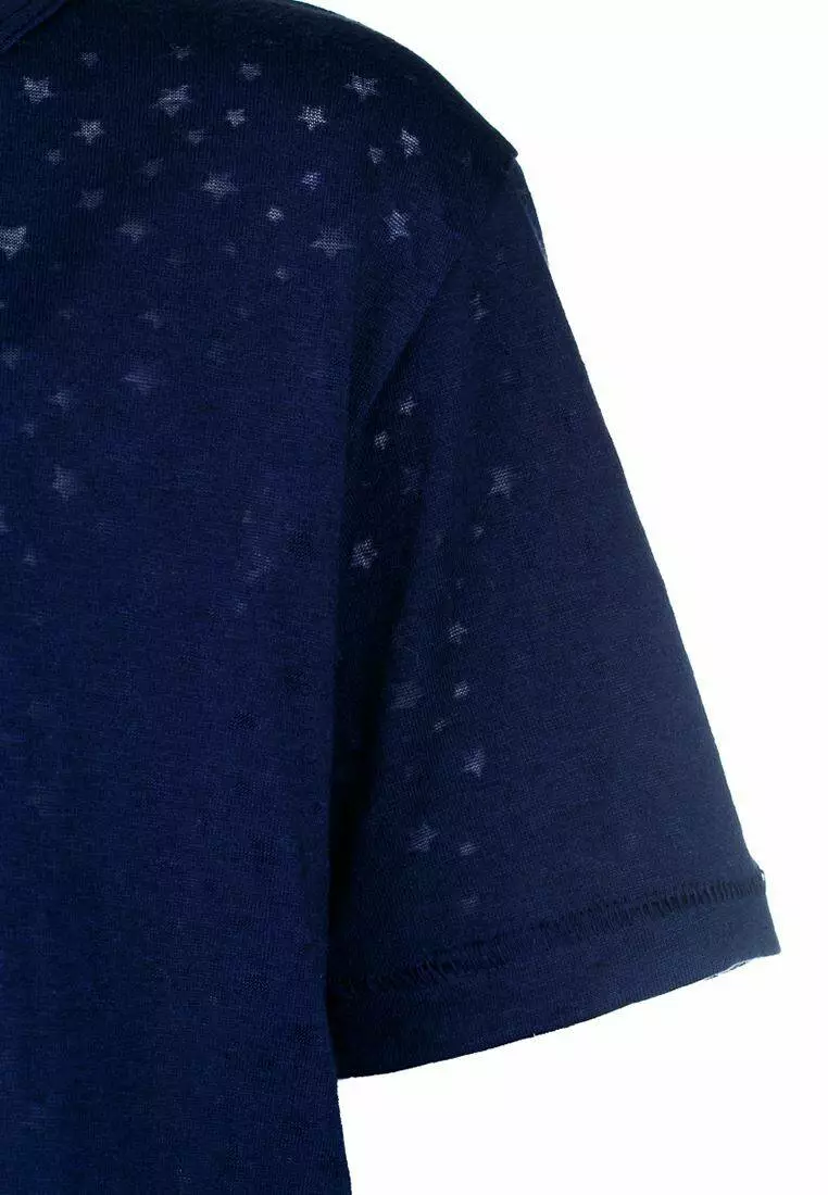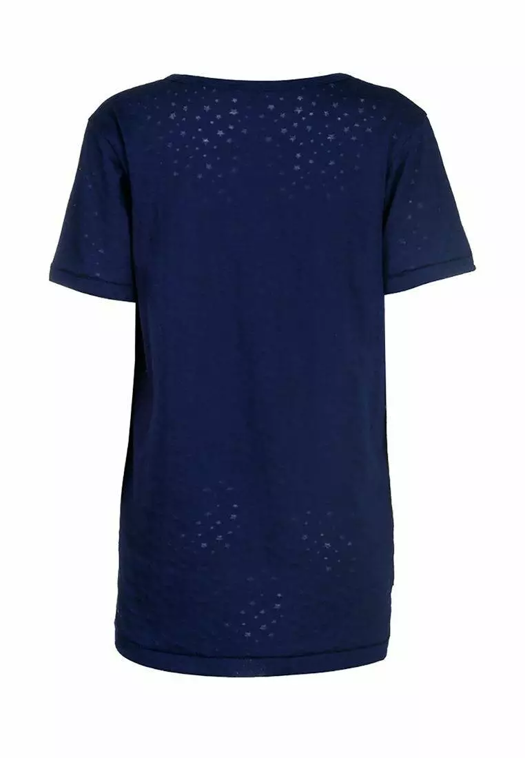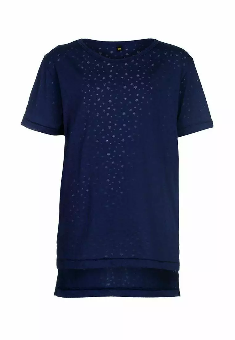 Деталі: Колір: темно-синій. Принт - дрібні зірочки. Прямий крій. Подовжена спинка. Кругла горловина.