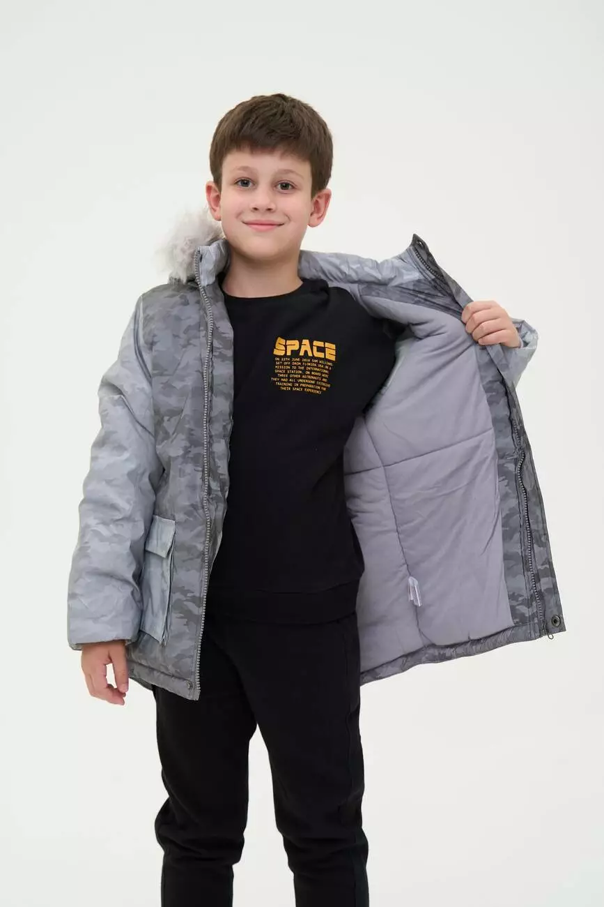Тепла дитяча куртка з хутряним капюшоном, сірий камуфляж YU.13.13.002