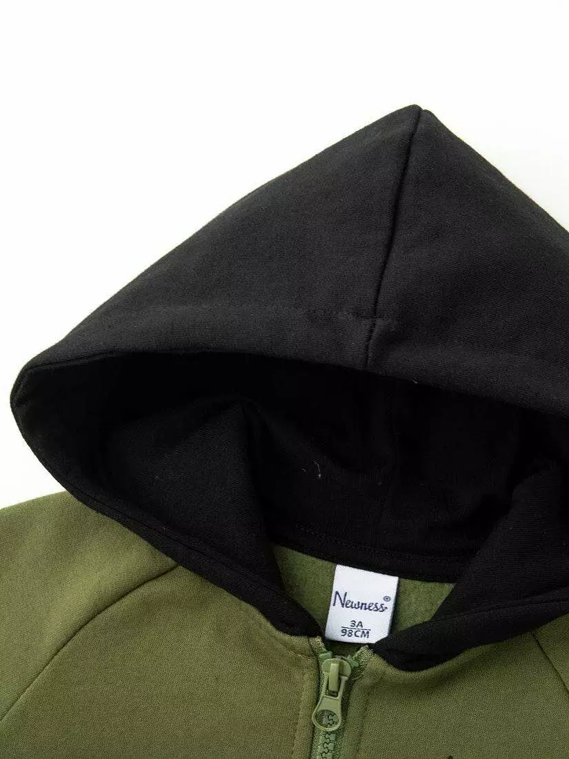 Зустрічайте нову колекцію - колаборація брендів YUMSTER і NEWNESS! Деталі моделі: Толстовка зеленого кольору. Глибокий чорний капюшон. Спереду застібка – блискавка. Кишеня-кенгуру. Довгий рукав без плечового стежка. На рукавах вставки контрастного кольору. Манжети на рукавах та низ толстовки виконані з еластичної резинки. Толстовка тепла, всередині з начосом. Розмірний ряд: на зріст від 98 см до 134 см
