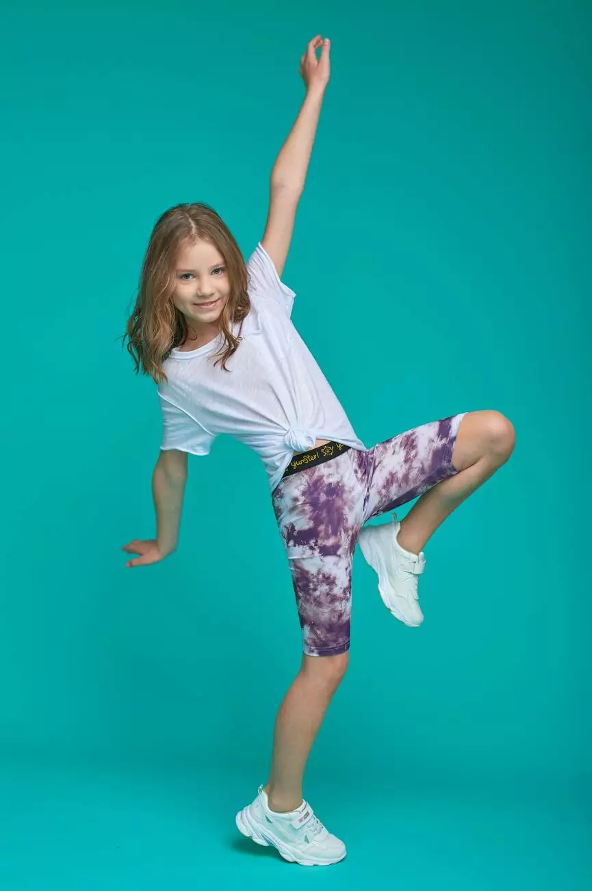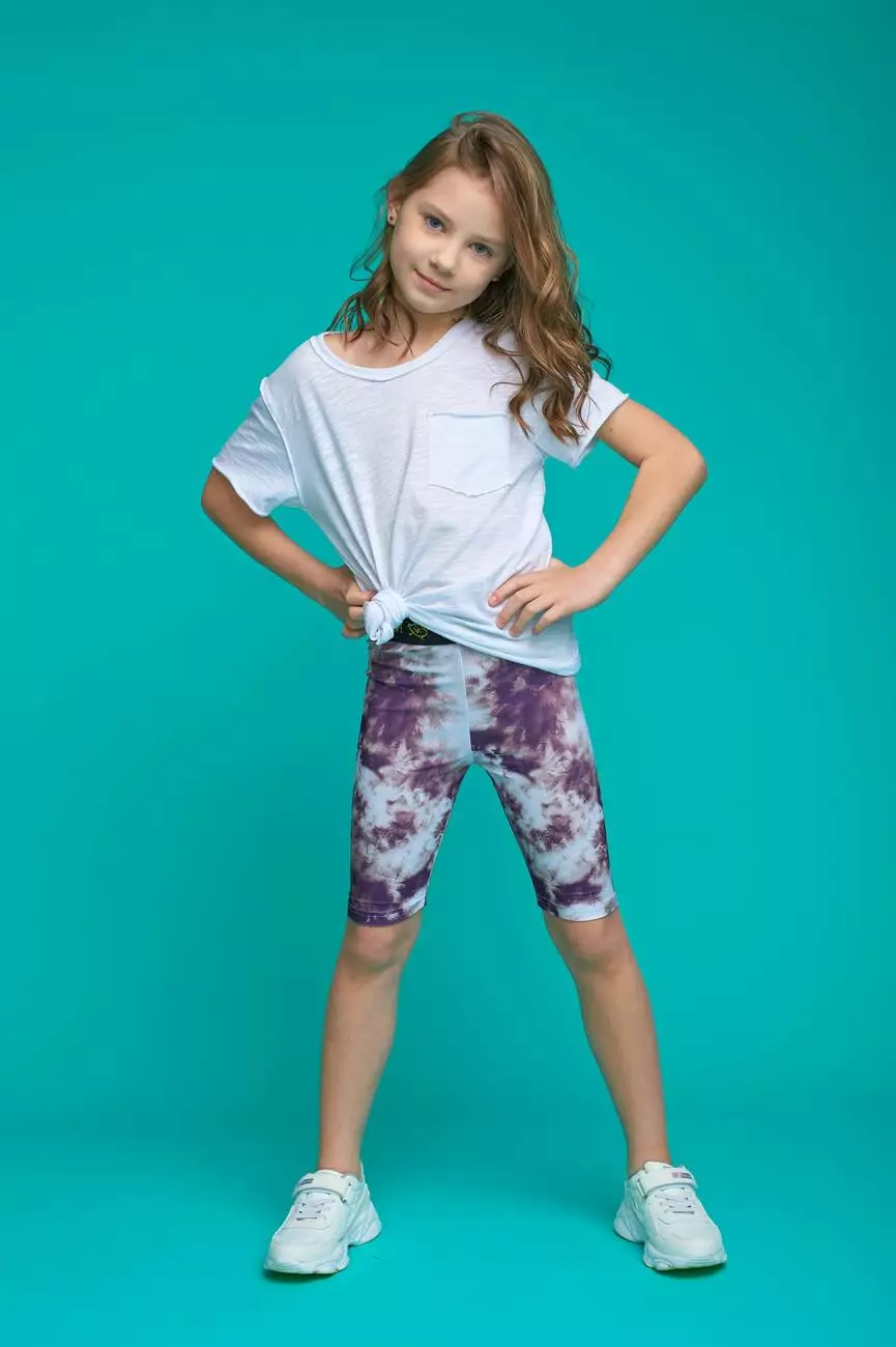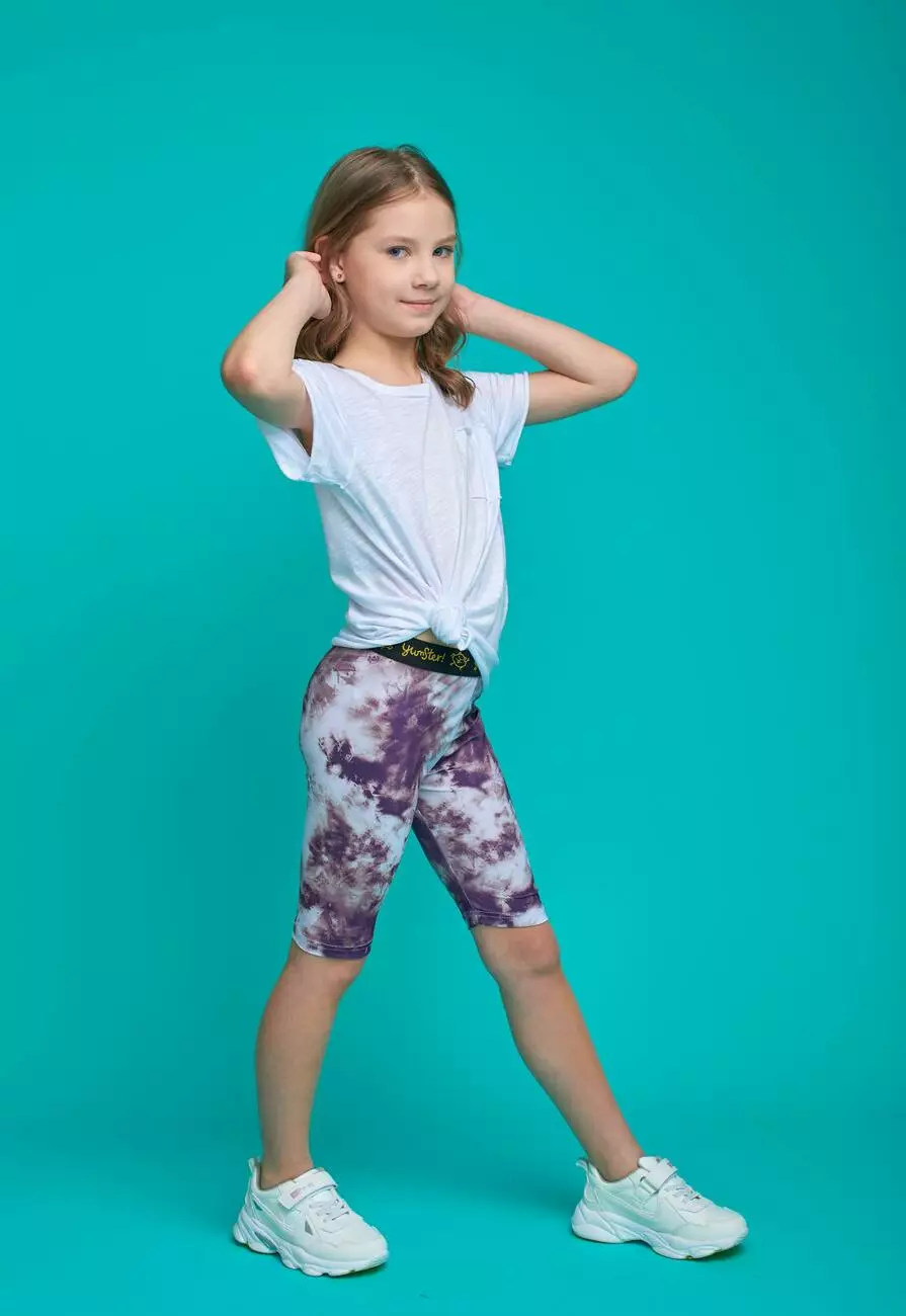 Велосипедки для дівчинки в яскравому принті тай-дай - капсула YUMSTER SPORT CHIC. Зручні, приємні до тіла велосипедки, які можна носити де завгодно. Ця модель відмінно поєднується з кольоровими й однотонними футболками.